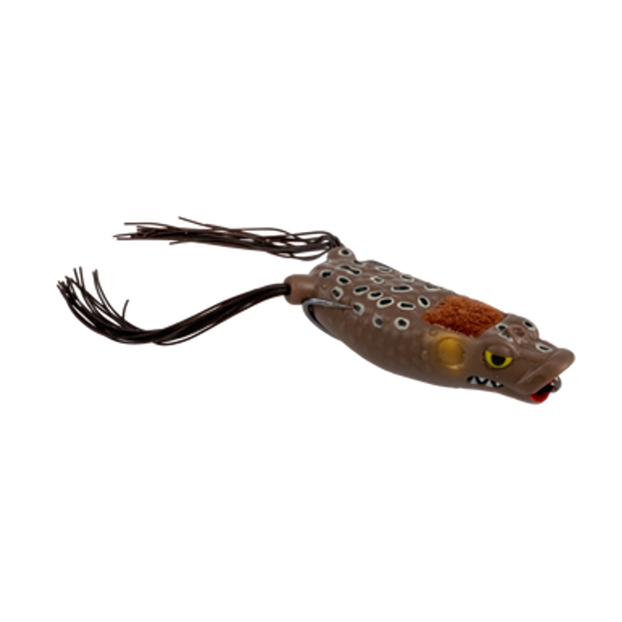 Following in the footsteps of the highly effective Boom Boom Frog, the Stanford Baits Boom Boom Hollow Body Popping Frog was designed by MLF pro angler and frog fishing expert, Fred Roumbanis, to give anglers the ultimate topwater popping frog. Built with a deep concave mouth that pops and sprays a generous amount to water, the Stanford Baits Boom Boom Hollow Body Popping Frog creates a loud disturbance that attracts predators out of the thickest cover and generates explosive strikes. It also features patent-pending FrogFur located on the top of the frog, which greatly increases hook up ratios by snagging a bass sandpaper-like teeth to make it harder for them to throw the frog, resulting in better hook-sets and more landed fish. A diamond-shaped belly weight sits in between the razor sharp Mustad Wide Gap Double Frog Hook to create a bigger gap for better hook penetration as well. Available in a variety of Freds favorite colors, the Stanford Baits Boom Boom Hollow Body Popping Frog is perfect for any time you want a little more action than a standard frog to draw more strikes.
