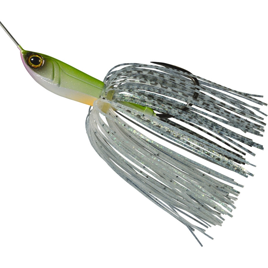 The SOB is a spinnerbait developed by focusing on reflected light, vibration, and underwater sound while refining its basic performance. The blade, which is the source of the reflected light, is an original WHIPLASH design. The hammer-tone dimple pattern firmly grips the water current, providing stable rotation performance, scattering lively, powerful diffuse reflections and solid vibrations that stimulate instincts into the water. The vibrations of the head caused by the rotation of the blade are visible to the naked eye, moving up and down and side to side. The bait swims with a strong swaying skirt. What's more, its unique setting generates underwater sounds that can be heard when you put your ear close to the water surface. It's packed with stimulating elements that induce reflex feeding in fish.
