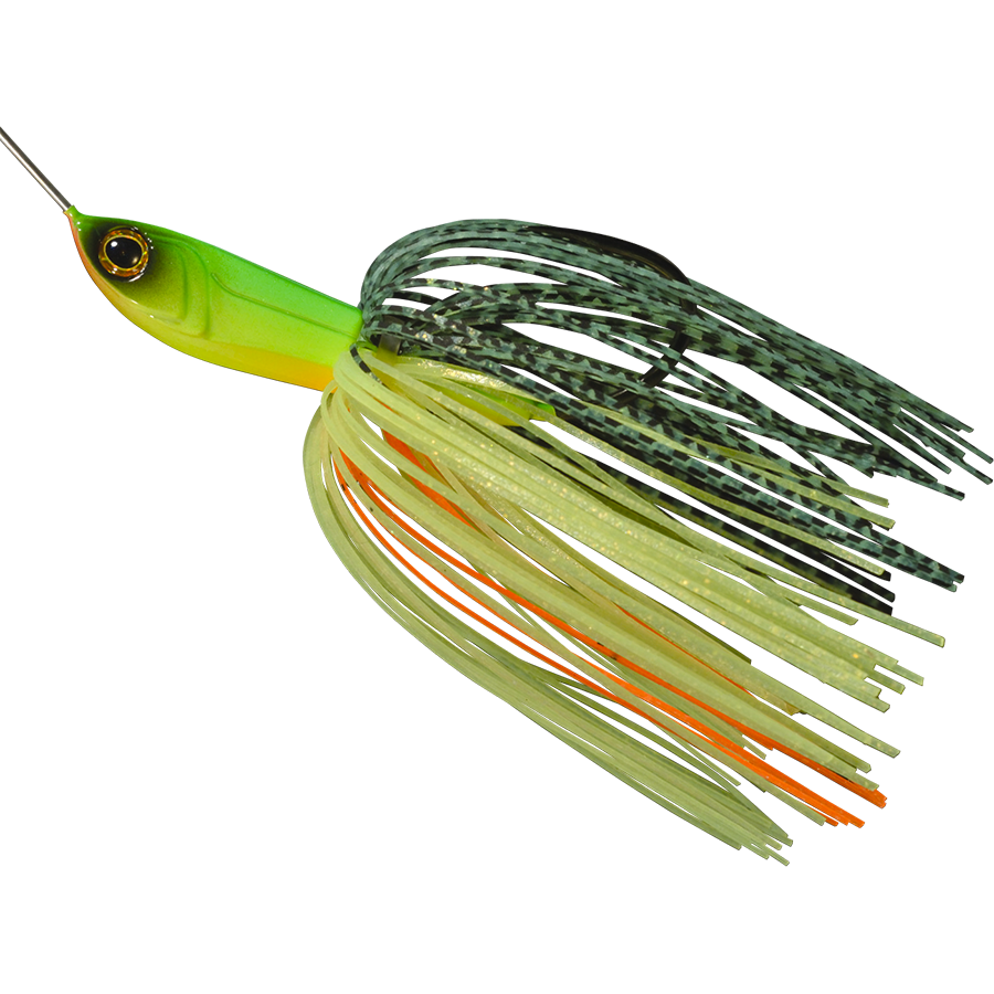 The SOB is a spinnerbait developed by focusing on reflected light, vibration, and underwater sound while refining its basic performance. The blade, which is the source of the reflected light, is an original WHIPLASH design. The hammer-tone dimple pattern firmly grips the water current, providing stable rotation performance, scattering lively, powerful diffuse reflections and solid vibrations that stimulate instincts into the water. The vibrations of the head caused by the rotation of the blade are visible to the naked eye, moving up and down and side to side. The bait swims with a strong swaying skirt. What's more, its unique setting generates underwater sounds that can be heard when you put your ear close to the water surface. It's packed with stimulating elements that induce reflex feeding in fish.